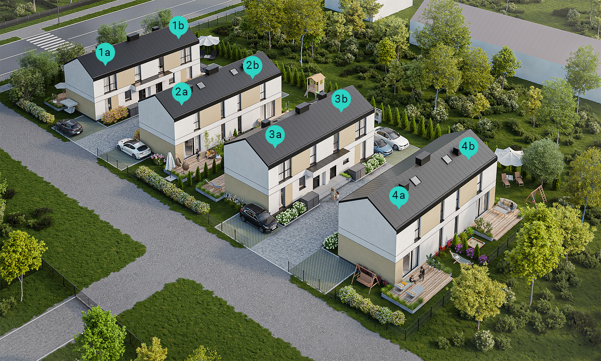 | 4b | B | 0 | 4 | 80,72m2 | 126,90m2 | Ogród | 4 | Sprzedane | Sprzedane | NR:Nr:4b Typ: B Piętro: 0 Pokoje: 4 Pow:Pow: 80,72m2 Ogród:126,90m2 Budynek: 4- Sprzedane |