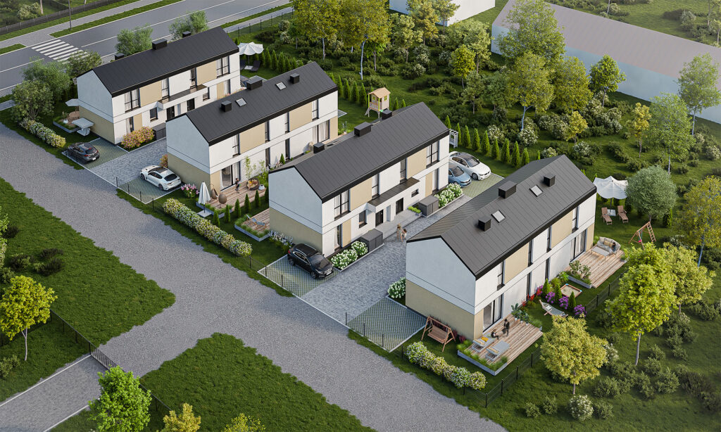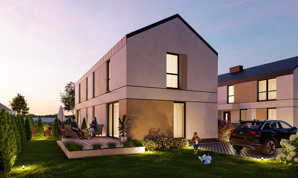 Ogrzewanie podłogowe, rozprowadzone w całym domu, gwarantuje równomierny rozkład temperatur w pomieszczeniach i przyjemne ciepło pod stopami przy minimalnym zużyciu energii. Dodatkowo, budynki mają gotową instalację, która umożliwia samodzielny montaż paneli fotowoltaicznych na dachu, pozwalając zredukować koszty związane z rachunkami za prąd. Jeśli posiadasz samochód elektryczny lub planujesz jego zakup, na pewno ucieszy Cię możliwość ładowania tego typu pojazdów przy swoim domu.